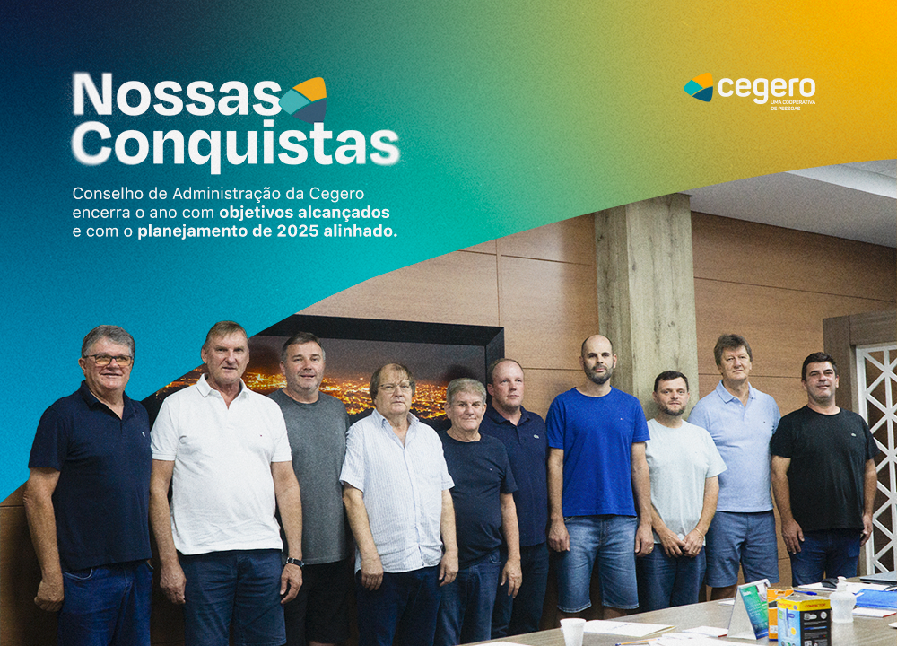 A última reunião do ano, do Conselho de Administração da Cegero, foi de análise dos resultados de 2024 e planejamento do futuro da Cooperativa. O Conselho de administração da Cegero comemora mais um ano de objetivos concluídos e excelentes resultados alcançados: