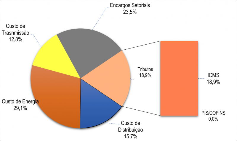 1. Valores sem tributos e outros elementos que fazem parte de sua conta de luz, tais como ICMS, PIS/PASEP e Cofins, Taxa de Iluminação Pública e o adicional de Bandeira Tarifária.